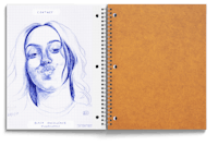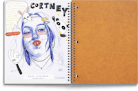 blue ballpoint pen and masking tape on gridded notebook paper and newly drawn digital illustrations and doodles.
